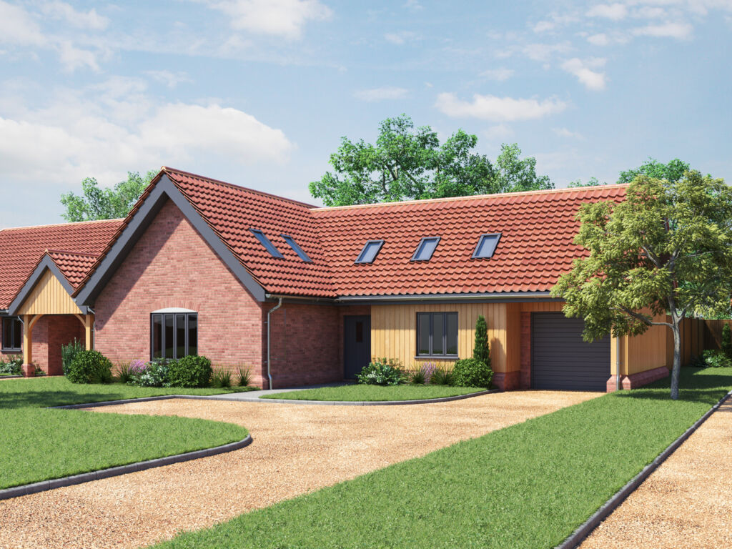 A 4 bedroom chalet bungalow with ground-floor en-suite bedroom and three further bedrooms with one en-suite to the first floor. Large kitchen/diner benefiting from bi-fold doors to patio and private rear garden. Spacious lounge with rear garden access via patio doors.  Separate study on the ground floor. Single garage